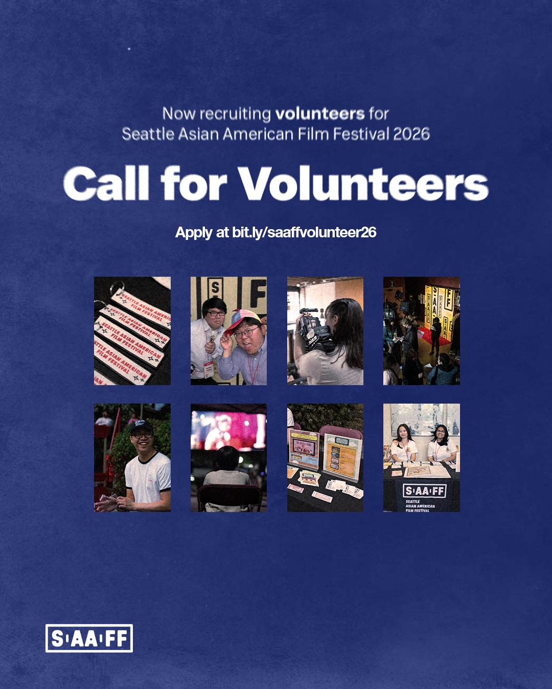 We’re building our volunteer staff team for 2026! From marketing to programming to production, SAAFF is powered by passionate volunteers who help bring Asian American stories to the big screen.